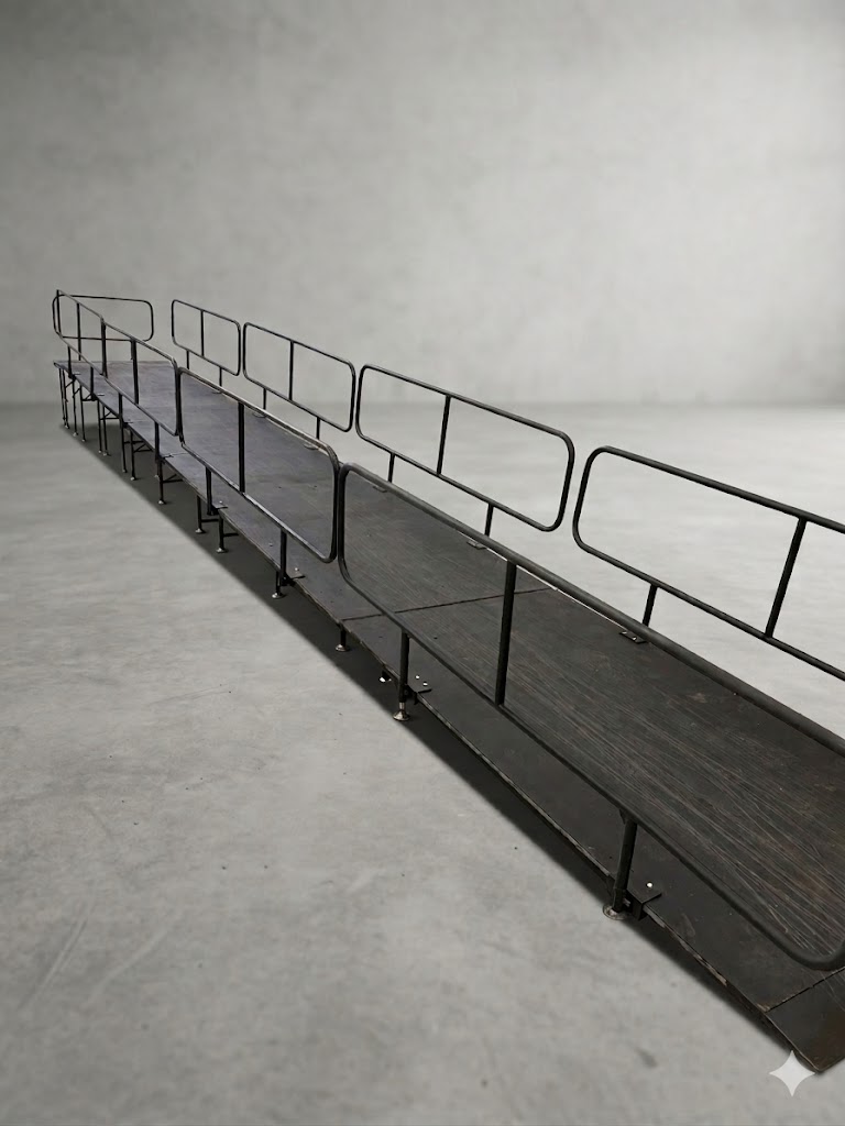 Our heavy-duty steel-frame ramp system is the professional solution for navigating steps, stages, and uneven terrain at your event. Designed for maximum versatility, this 5-piece modular system can be customized to your specific height requirements. Whether you are moving heavy equipment, rolling catering carts, or ensuring accessibility for your guests, our steel ramps provide a rock-solid, non-slip surface.